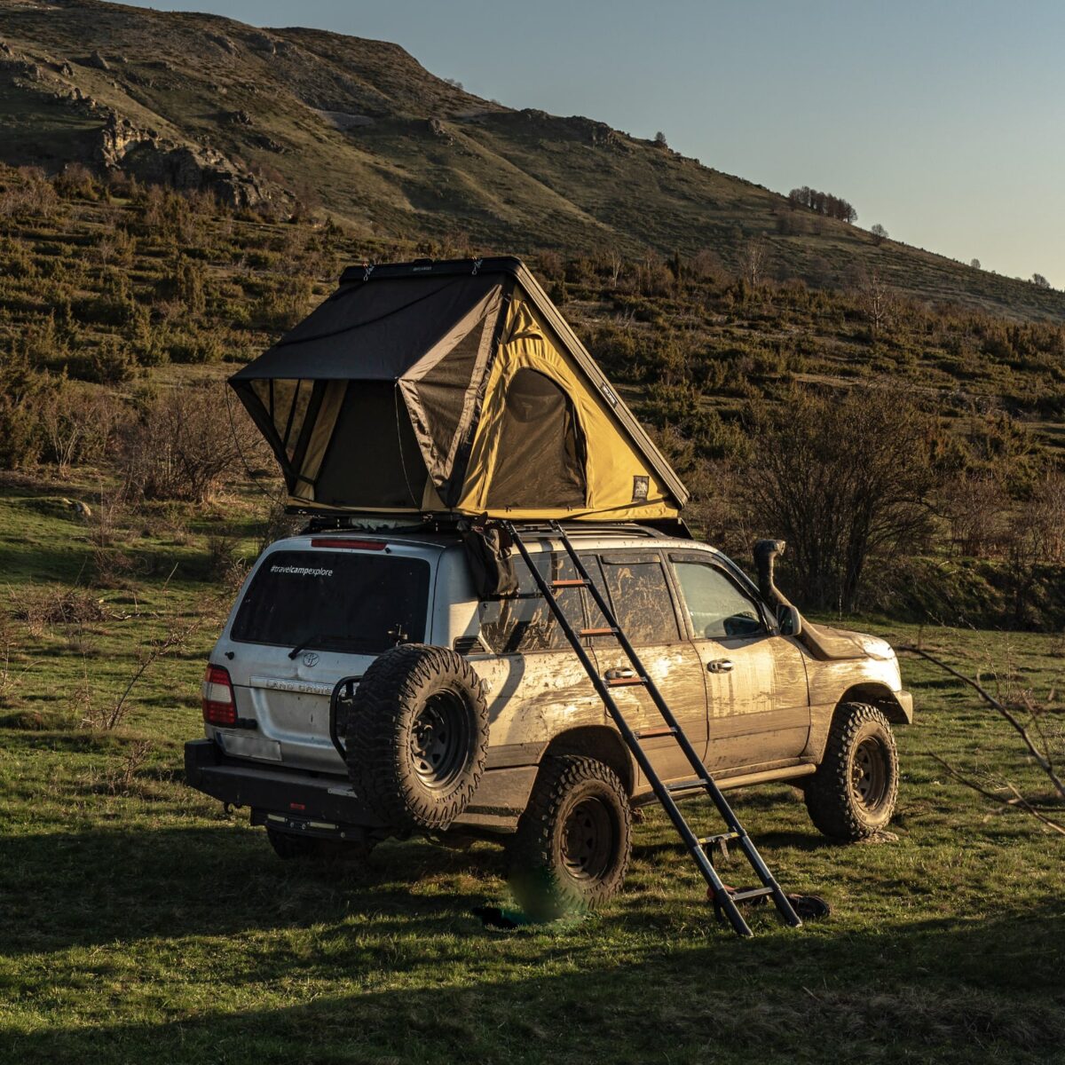 Dachzelt Dreieck schlank Marken Offlander Es ist ein Modell, das bei Menschen Anerkennung gefunden hat, die Wert auf Einfachheit, Minimalismus und sofortige Entfaltung legen. Extrem niedriges Profil nach dem Falten (nur 13 cm hoch!) macht es zu einem der aerodynamsten Zelte auf dem Markt, perfekt für den täglichen Gebrauch.