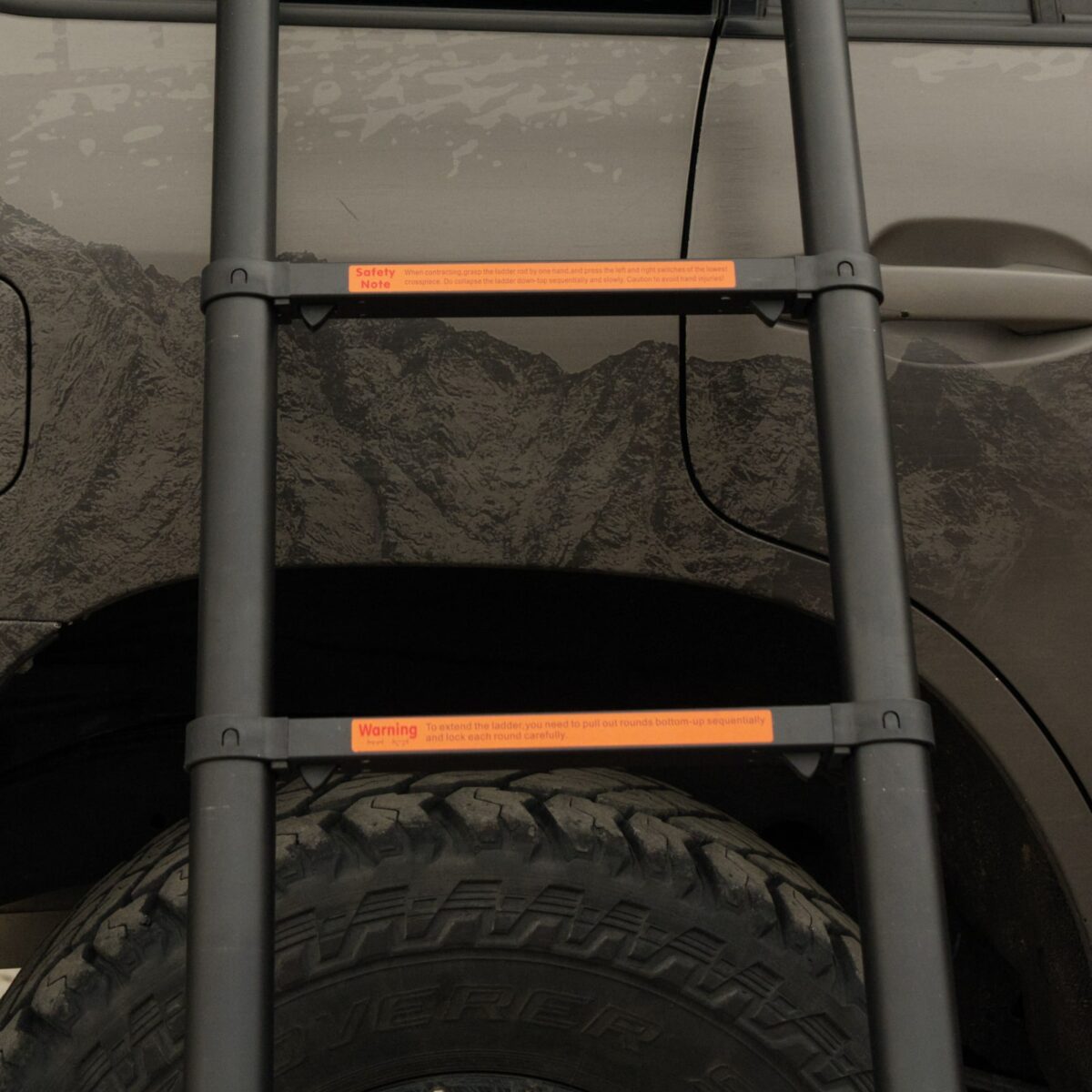 Das Zelt enthält auch eine klappbare Aluminiumleiter. Es ist leicht, handlich und nimmt nicht viel Platz ein.