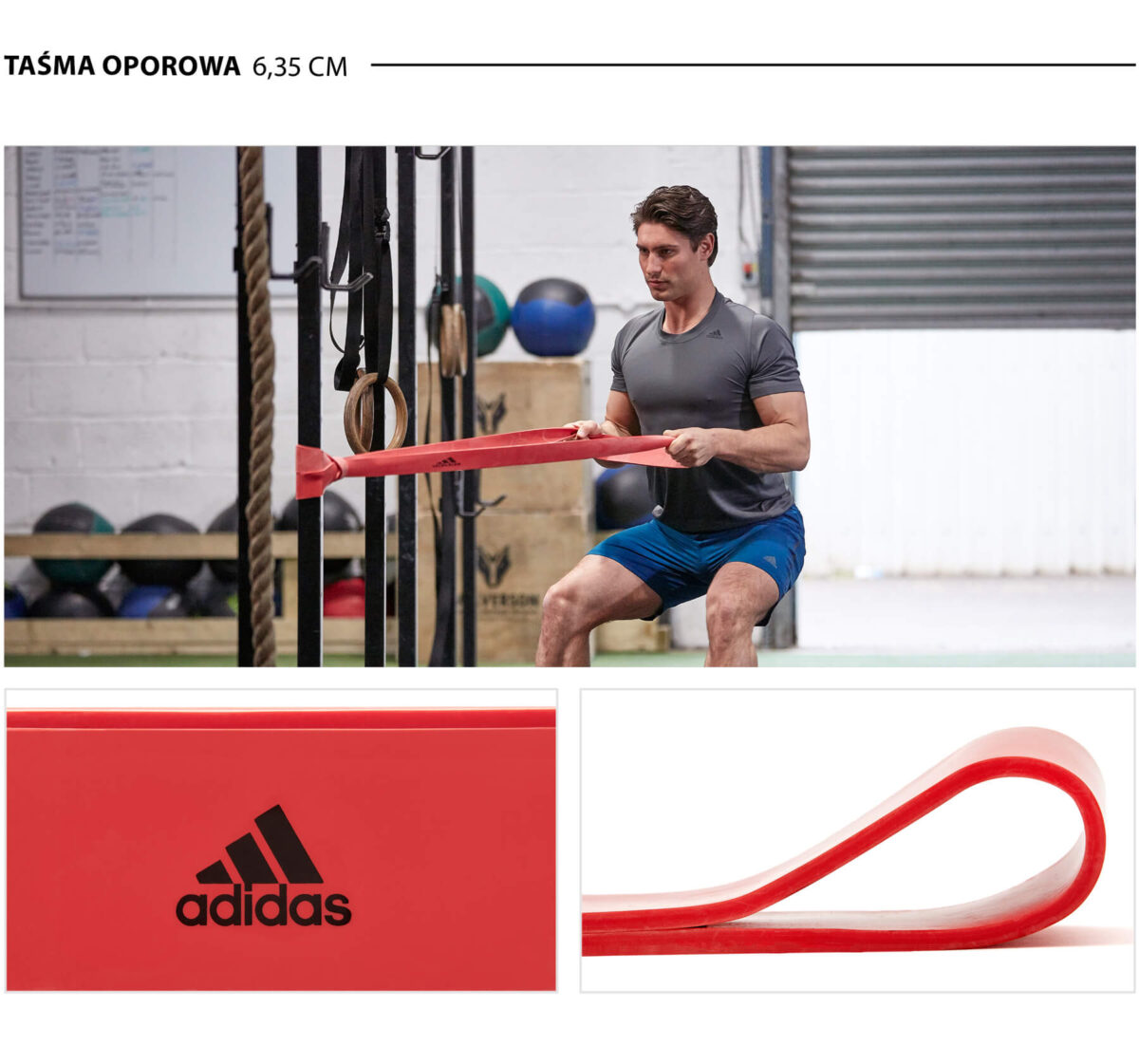 retraction tape branded 6.35 cm wide adidas It will be useful both for training with and without load. It is suitable for strengthening traditional strength training, provides constant resistance. Exercises with wristbands strengthen without the need for bulky equipment.