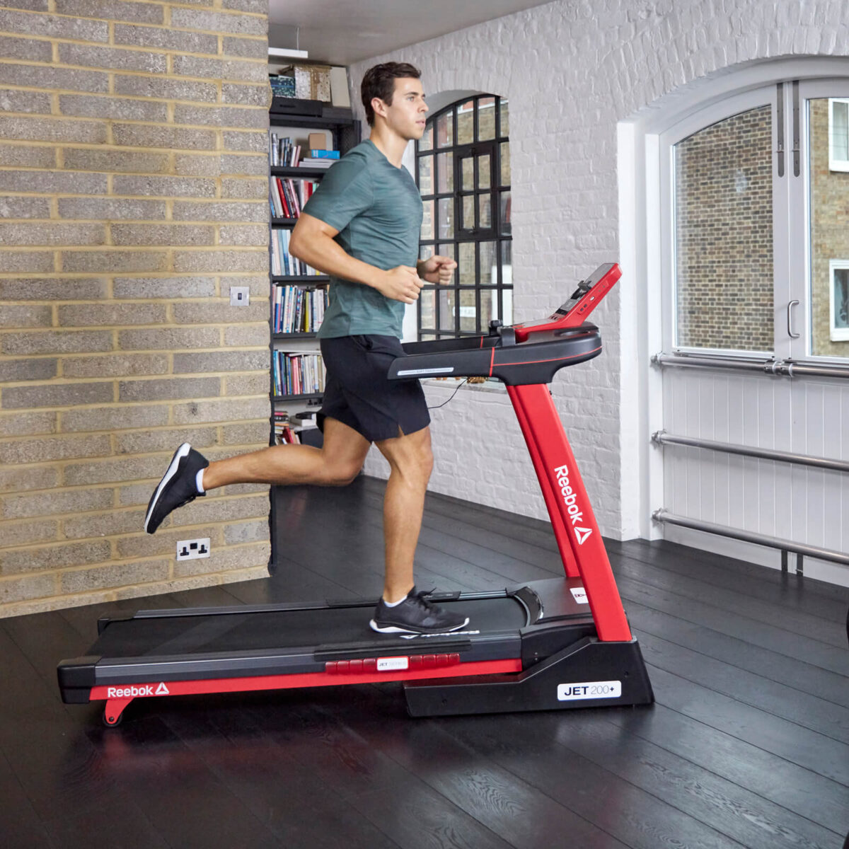 La cinta de correr Jet 200+ proviene de la serie Jet Reebok. Está equipado con la tecnología de amortiguación de cinturón más moderna y la placa de cinta de correr con tecnología de movimiento de aire. Las bolsas de aire de amortiguación llevan el aire para adaptarse mejor al impacto del pie del usuario contra la placa de la cinta de correr. Los conductos de aire móviles ayudan a reducir la fuerza de la reacción del suelo para evitar la sobrecarga de las articulaciones y otras lesiones potenciales mientras se ejecutan, lo que permite un entrenamiento seguro y prolongado.