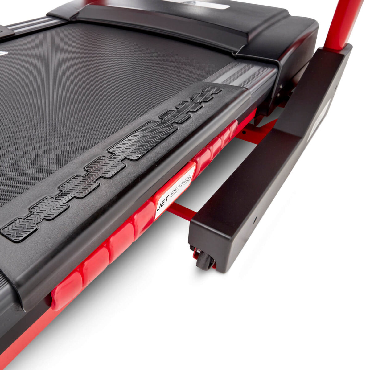 Diseñadores de cinta de correr con Serie Jet No se han olvidado de numerosas comodidades, como: altavoces integrados compatibles con reproductor de MP3, ventiladores y NBSP; Ruedas de transporte, entrada de auriculares Jack o dos bolsillos para botellas en el panel principal.